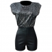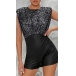 Fashion Sequined Spliced Artificial Leather PU Sleeveless Romper