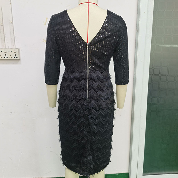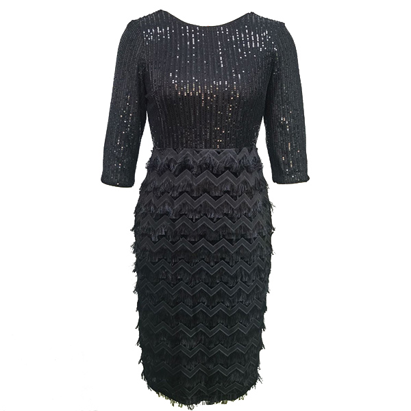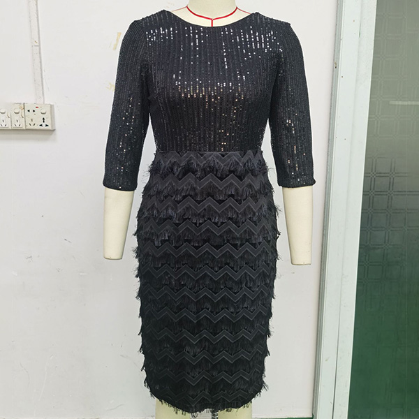 Look amazing at your next party in this Fashion Sequined Spliced Party Dress! This form-fitting dress is covered in sparkling sequin bodice that will catch the light as you move. It features a round neckline, elbow-length sleeves, and a backless design with a zipper closure. The skirt is tight with a wave pattern and bodycon to show off your curves. Pair this dress with high heels and a clutch bag to complete the look.