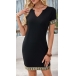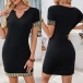 Fashion Sequined Spliced V-neck Short Sleeve Bodycon Dress