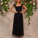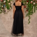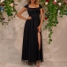 This black party dress features a square neckline, cap sleeves, and side slits, creating a chic and elegant look. The sequined bodice design dd sparkle and shine to the dress, Wanna have a try?