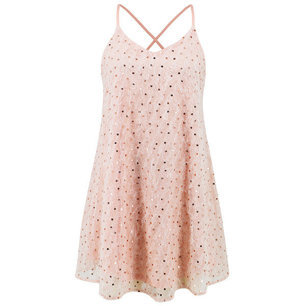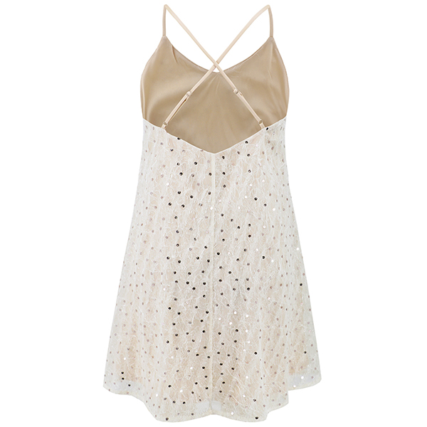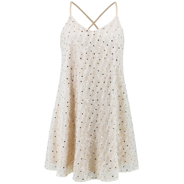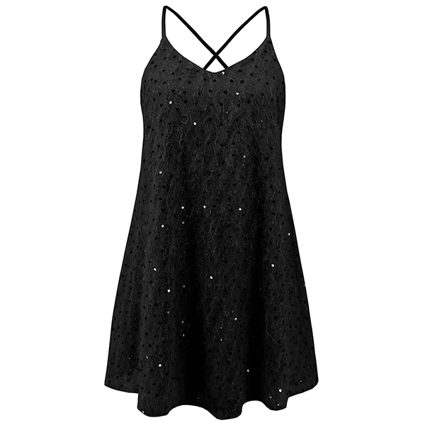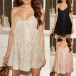 Fashion Sequined V-neck Cross-criss Backless Super Mini Dress