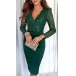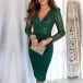 Fashion Sequined V-neck Puff Long Sleeve High-rise Bodycon Dress