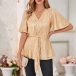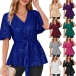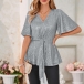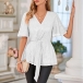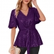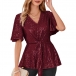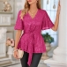 Fashion Sequined V-neck Short Sleeve Self-tie Shirt