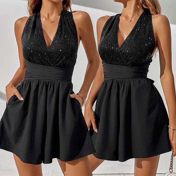 Wow, a bling-bling dress! The deep V-neck design creates a subtle hint of sexiness while the sleeveless cut allows you to showcase your toned arms. The sequined detailing on the bodice adds a dazzling effect that is sure to make you the center of attention at any event. Wanna have one?