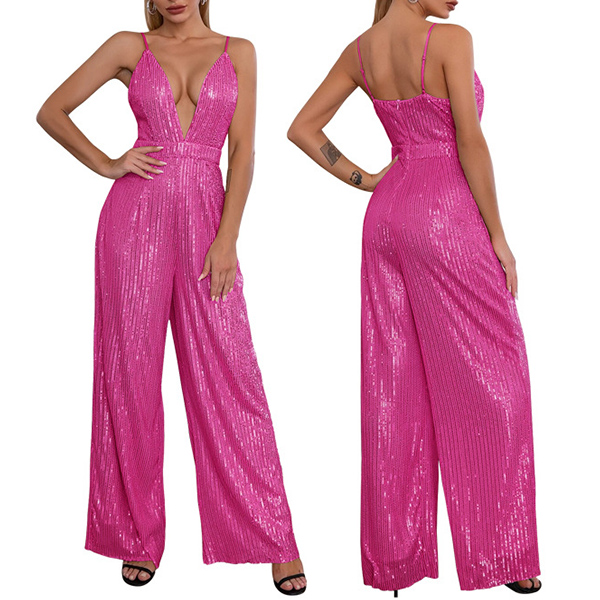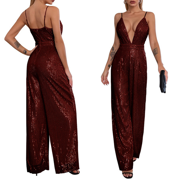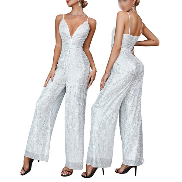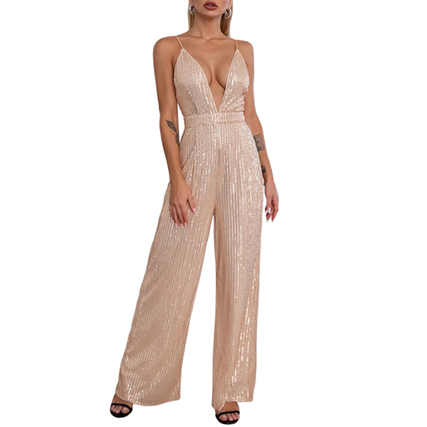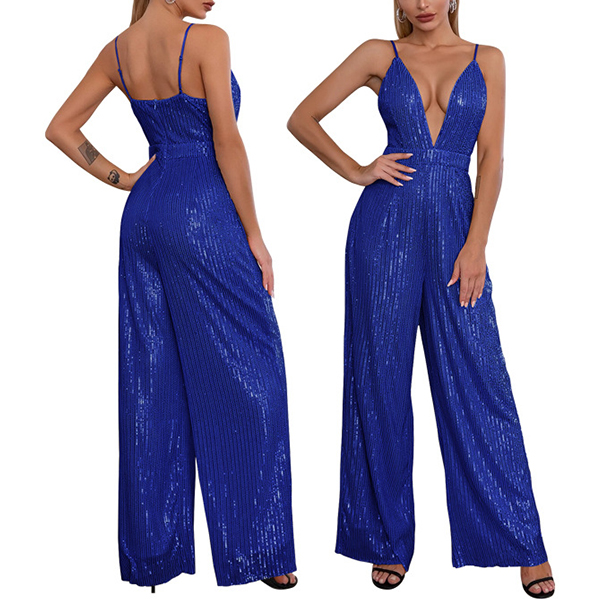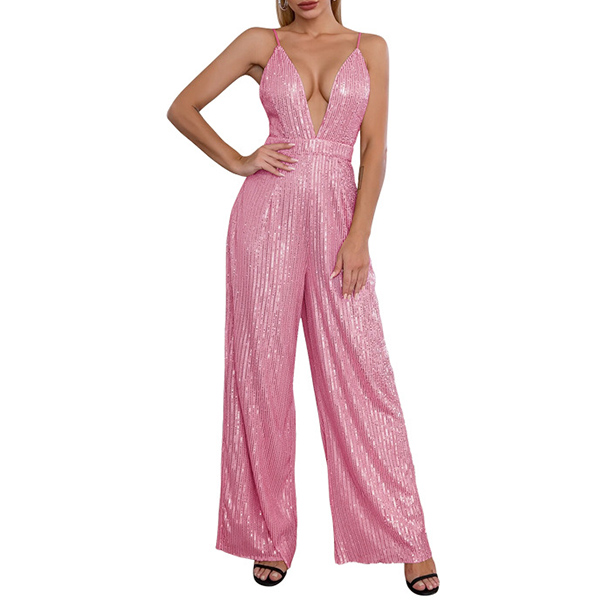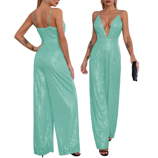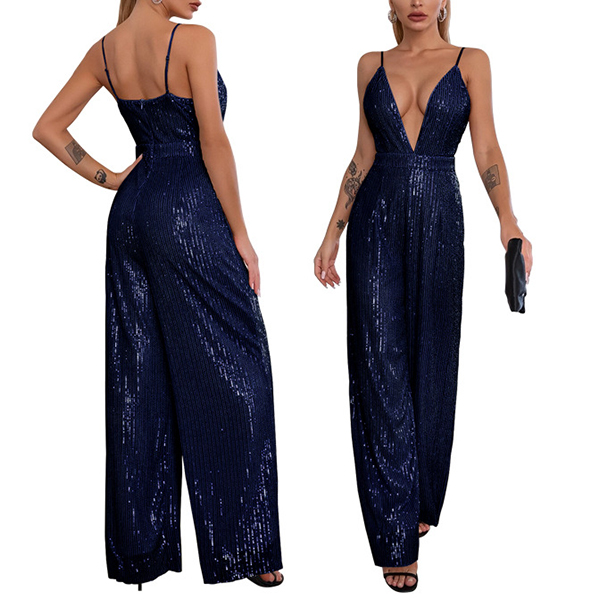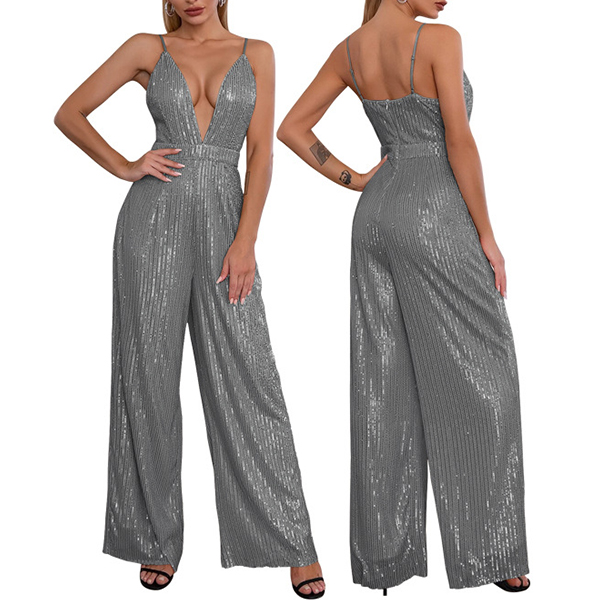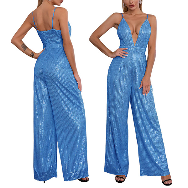 Fashion Sequined V-neck Wide-leg Jumpsuit