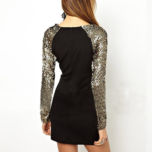 Show your elegant temperament and charming style through this dress. It is characterized by long sleeve,with sequins for decoration,sparkly and glamorous. Fashion round neck and slim fit design,perfect outline your slender figure.