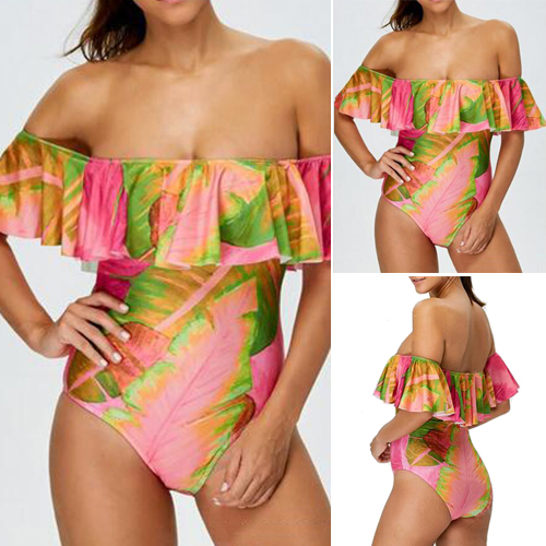 The swimsuit features floral printed patterns, with off shoulder design, sexy and stylish, which gives people a stylish and charming