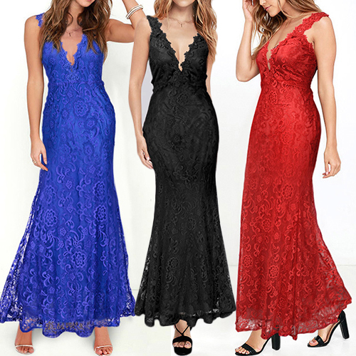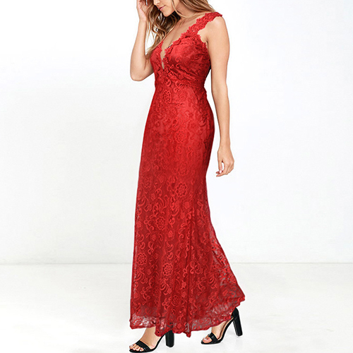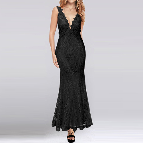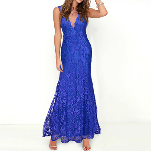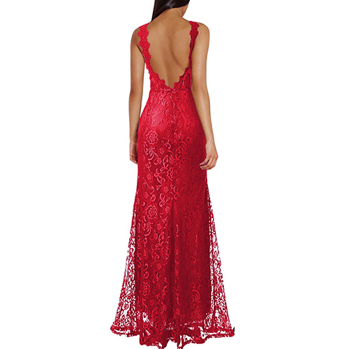and noble charm via this gorgeous maxi dress. The piece adopts romantic lace style, with deep V-neck and backless design,