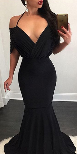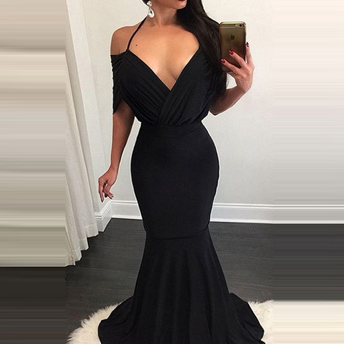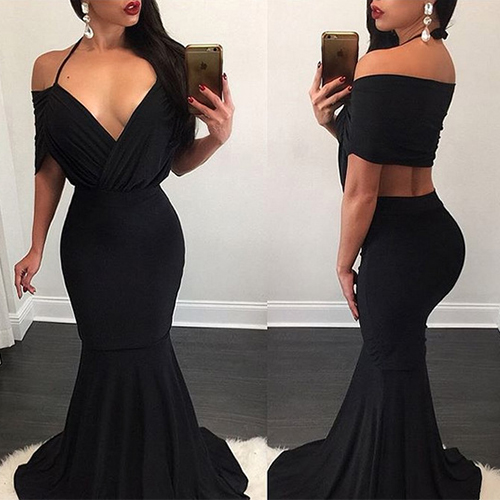 It is decorated with solid color and backless design, with off shoulder patterns,