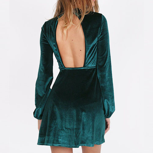 The dress is styled with solid color and long sleeve backless design, elegant and stylish. Its unique