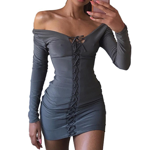sleeve patterns, with off-shoulder V-neck design, sexy and stylish. The bandage design can show your personality and