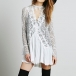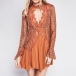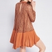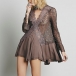 This dress is decorated with solid color and lace spliced patterns, with long sleeve design, which can be a