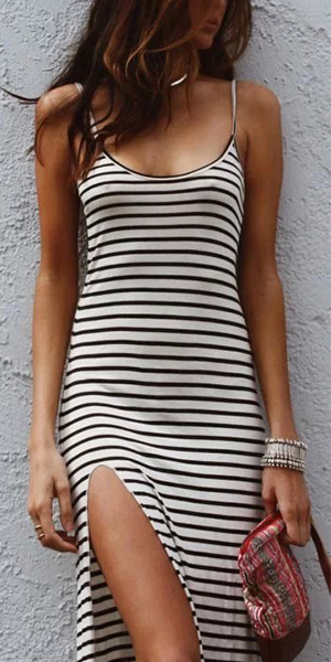 This sling dress features casual and stylish style, which can bring people an eye-catching look. The stripe