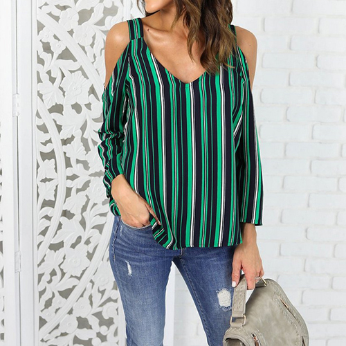 with V-neck design, casual and stylish. The cold shoulder patterns will showcase your beautiful