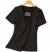 Fashion Short Sleeve Chain U-neck Solid Color Slim Fit Top