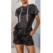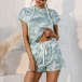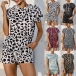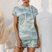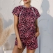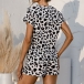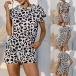 Fashion Short Sleeve Hooded Leopard Printed Top + Shorts Two-piece Set