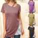 Fashion Short Sleeve Lace Spliced Hem T-shirt