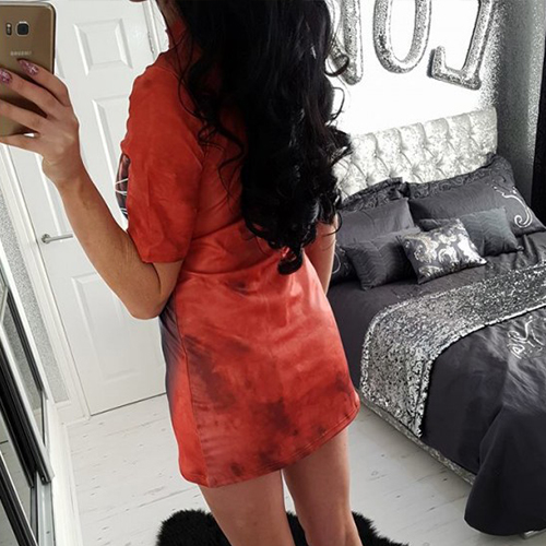 Designed with short sleeve,lace-v-neck and a fit silhouette,this dress can perfectly portray your slender figure