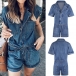 Fashion Short Sleeve Notched Lapel High Waist Denim Romper