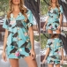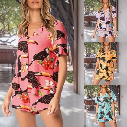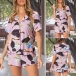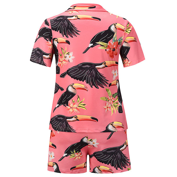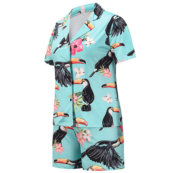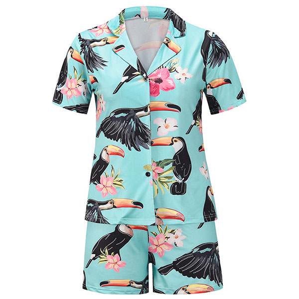 Fashion Short Sleeve Notched Lapel Printed Top + Shorts Nightwear Set