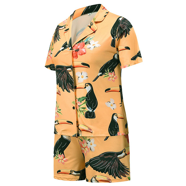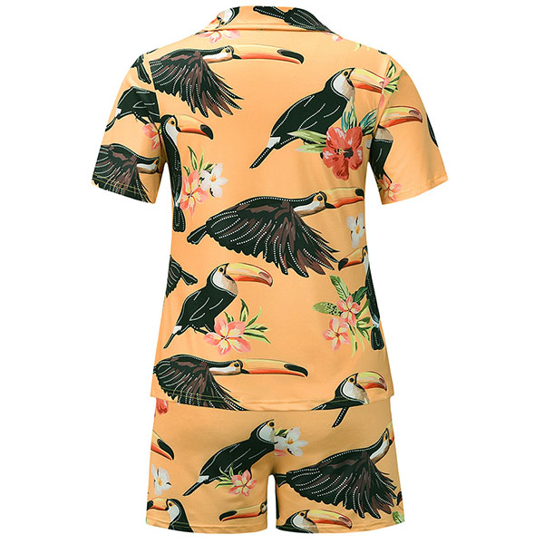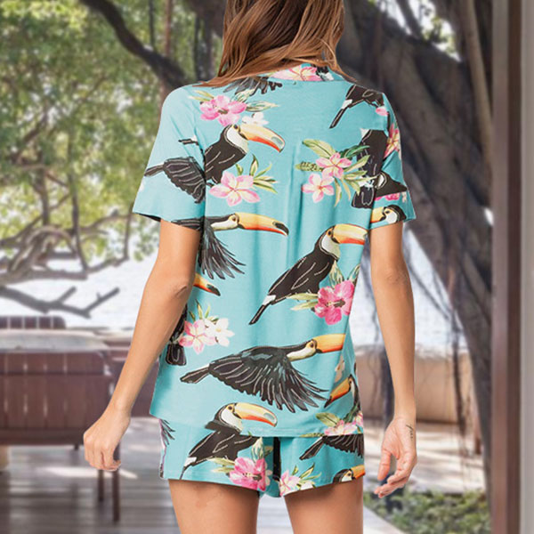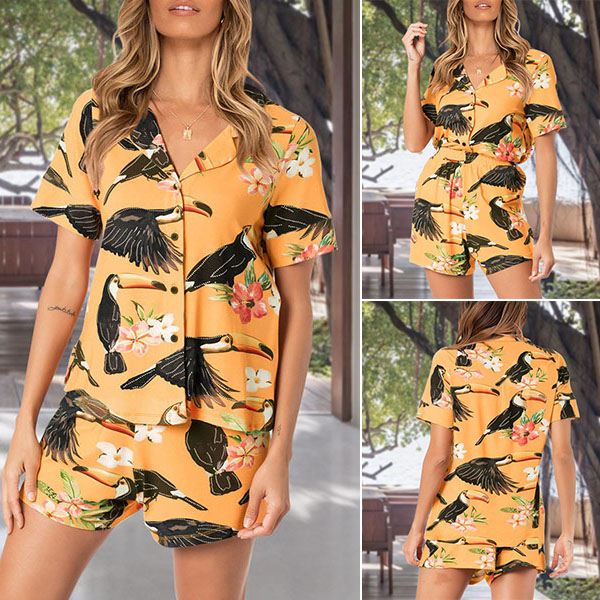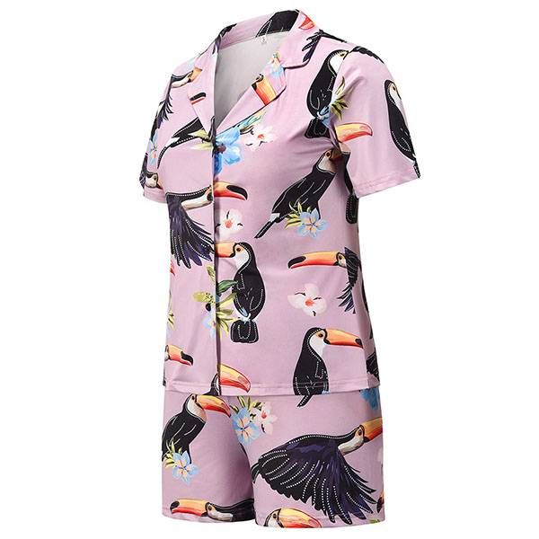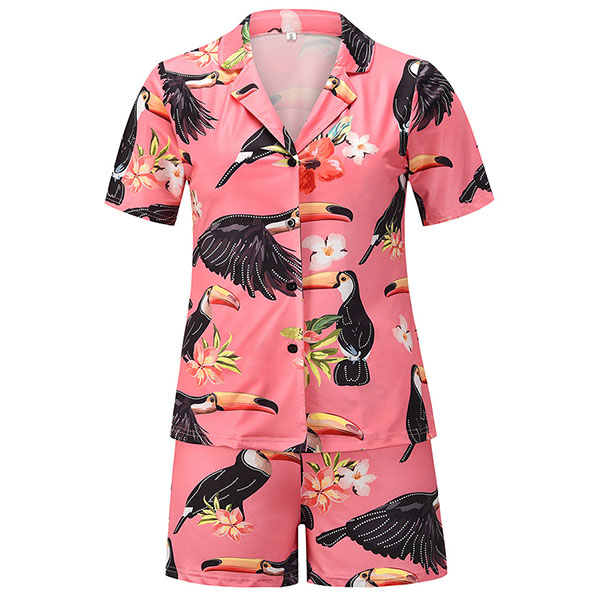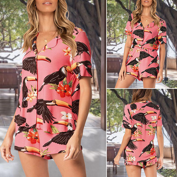 Hey,girls,you can trust in this nightwear set to have a good sleeping. Its chic and colorful printed details will make it look more attractive. Including a short sleeve notched lapel top and a shorts,crafted from soft and breathable fabric,this nightwear set can give you the comfortable wearing feeling.