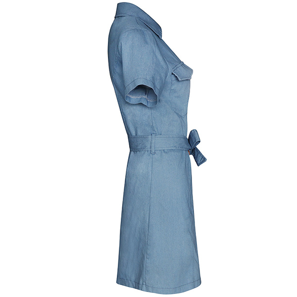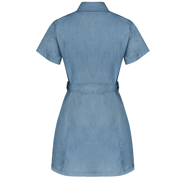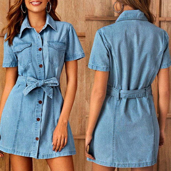 From your busy workdays to weekend out,this delicate and stylish denim dress can give you a perfect transition. Finished with short sleeve,POLO collar and single-breasted design,this denim dress can easily enhance your style and charm. Comes with a waist strap design,which makes this piece look more attractive. So why not invite it to your wardrobe?