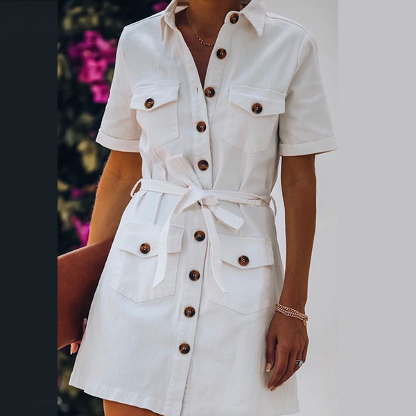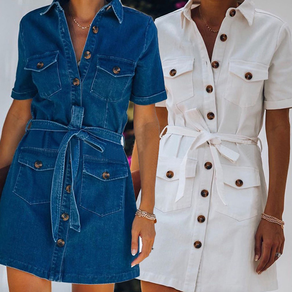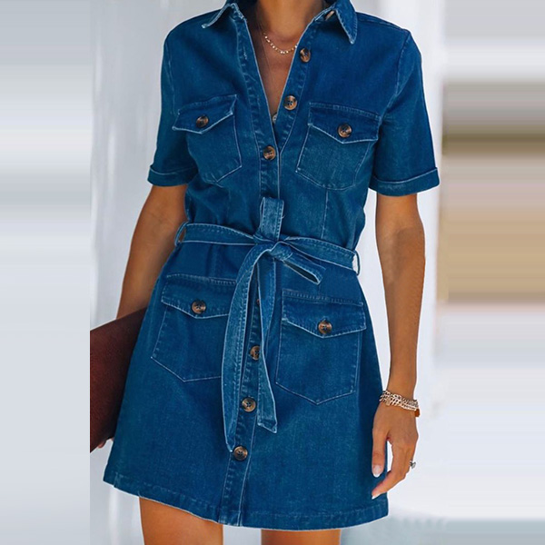 Your style can have an instant boost when you dress yourself up with this denim dress. It is finished with short sleeve,POLO collar and single-breasted design,classic ye stylish. The waist strap design not only enriches the design style,but also can help highlight your figure. So why not have a try this denim dress to boost your charm?