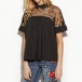 POLO collar and distinctive design like embroidered gauze spliced details make this piece so appealing. A perfect