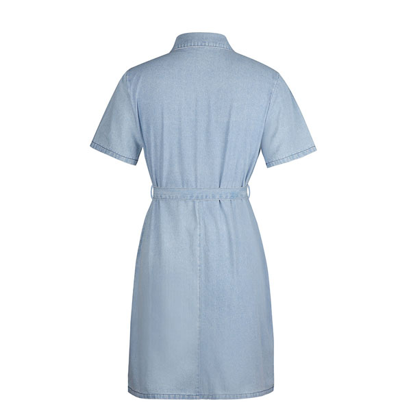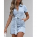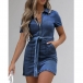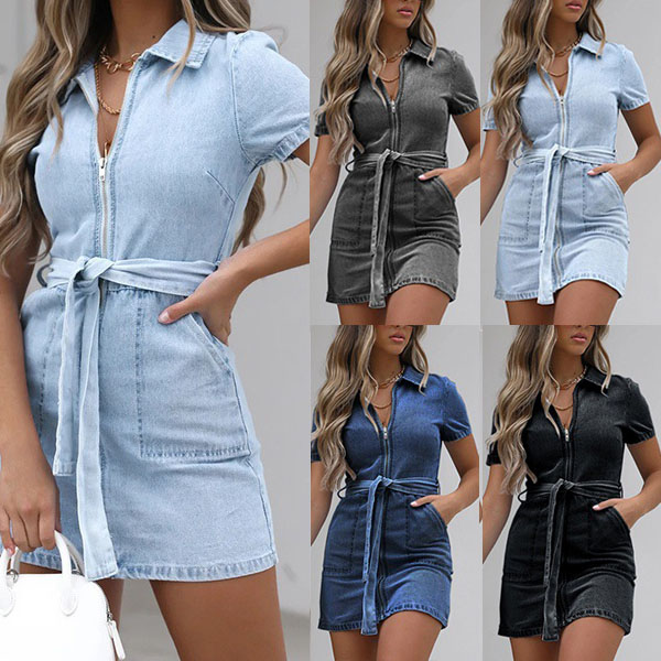 Fashion Short Sleeve POLO Collar Front-zipper Slim Fit Denim Dress