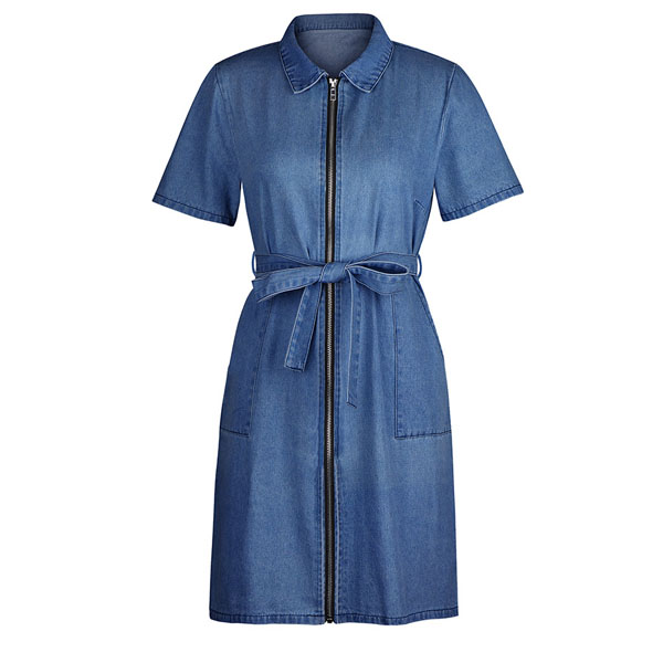 When you have this dress in your hand,you don't need to worry about what to wear for your daily out. It is finished with short sleeve,POLO collar and front-zipper design,this dress is sure to give you a comfortable day with its soft and breathable fabric. Moreover,the fit silhouette design can showcase your slender figure. Dress it up with your favourite shoes to start your wonderful day.