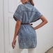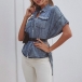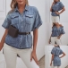 Fashion Short Sleeve POLO Collar High-low Hem Denim Shirt