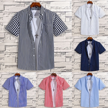 Fashion Short Sleeve POLO Collar Men's Striped Shirt