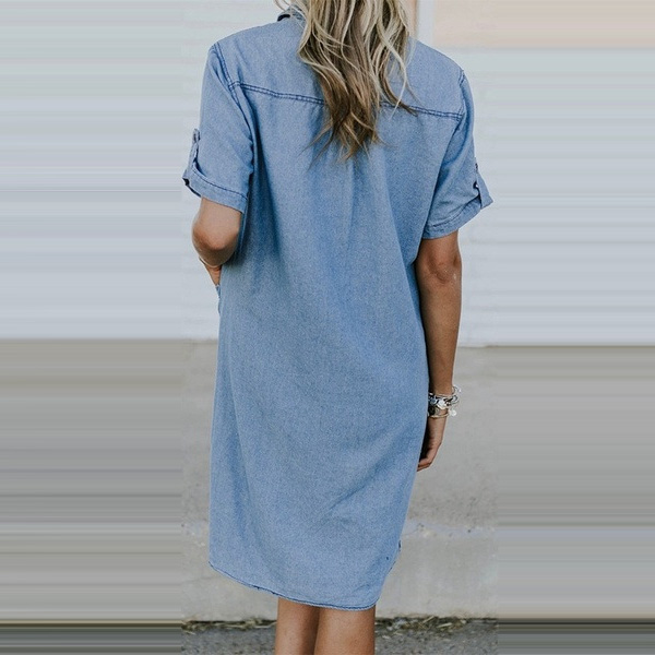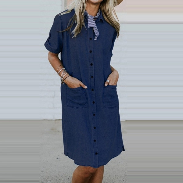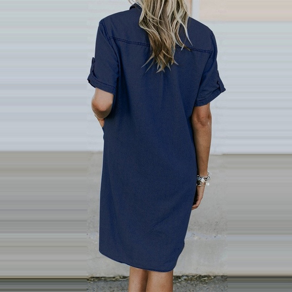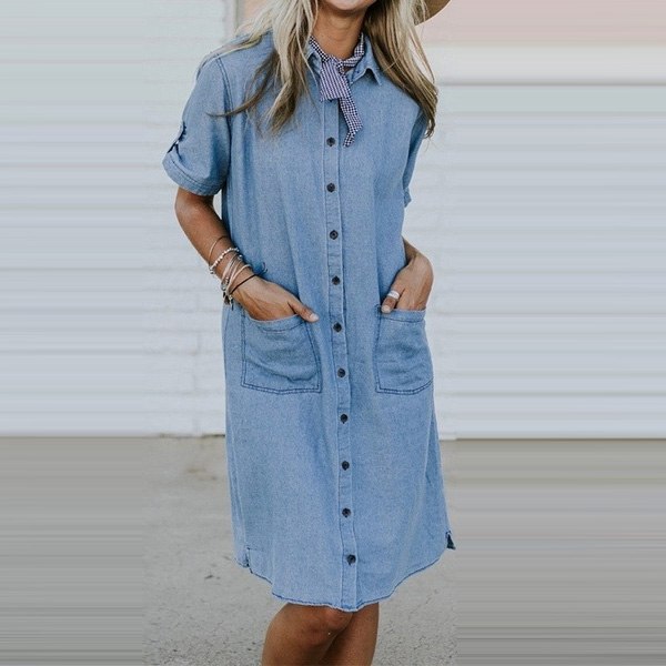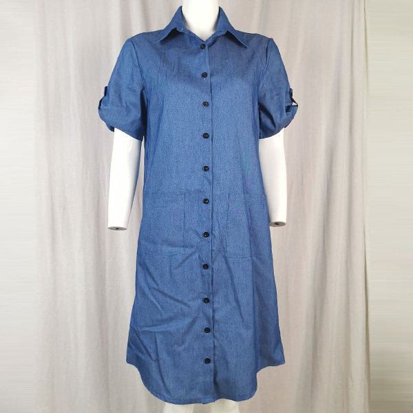 For your busy workdays,when you have no time to think about what to wear,then you can make your eyes focused on this denim dress. It is finished with short sleeve,POLO collar and single-breasted design,this dress can give you a comfortable day while it maintains your style and personality.