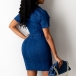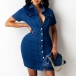 Fashion Short Sleeve POLO Collar Single-breasted Slim Fit Denim Dress
