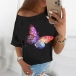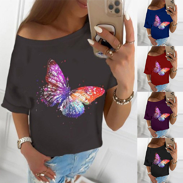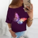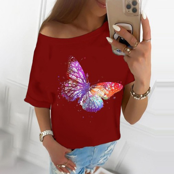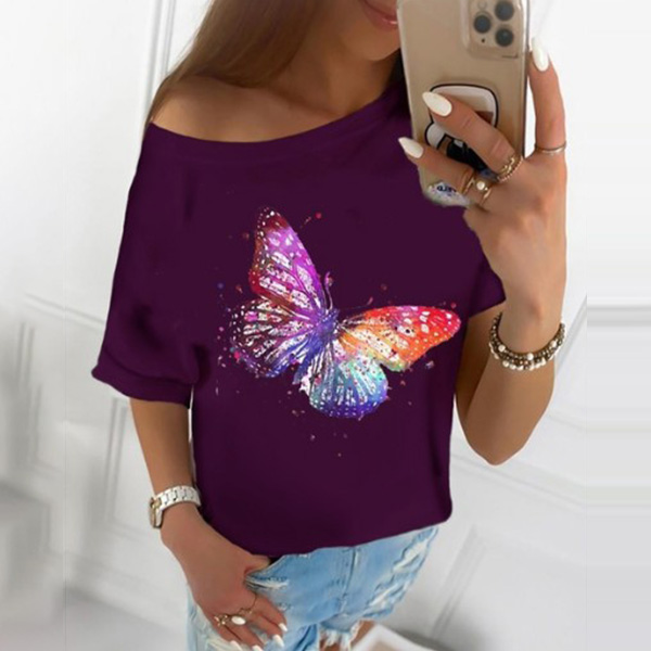 Fashion Short Sleeve Round Neck Butterfly Printed T-shirt