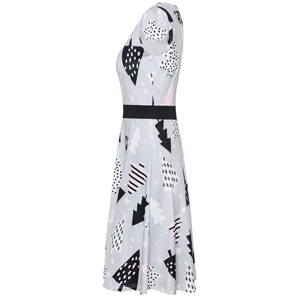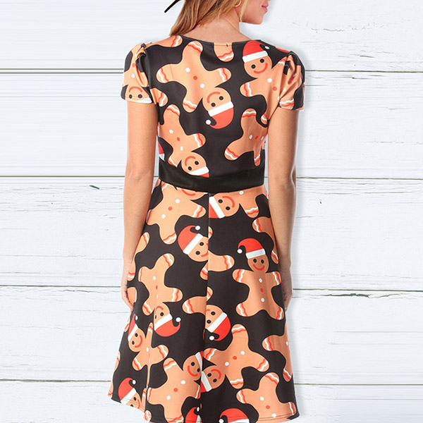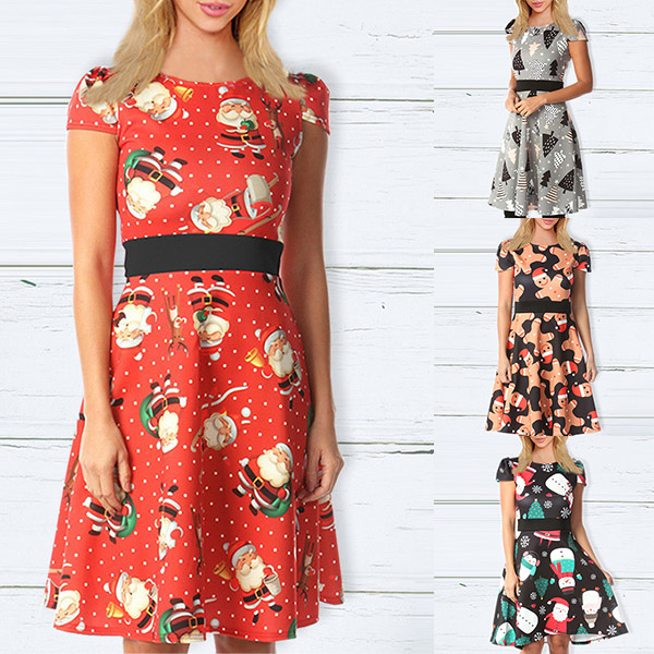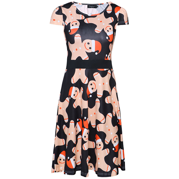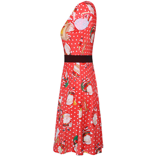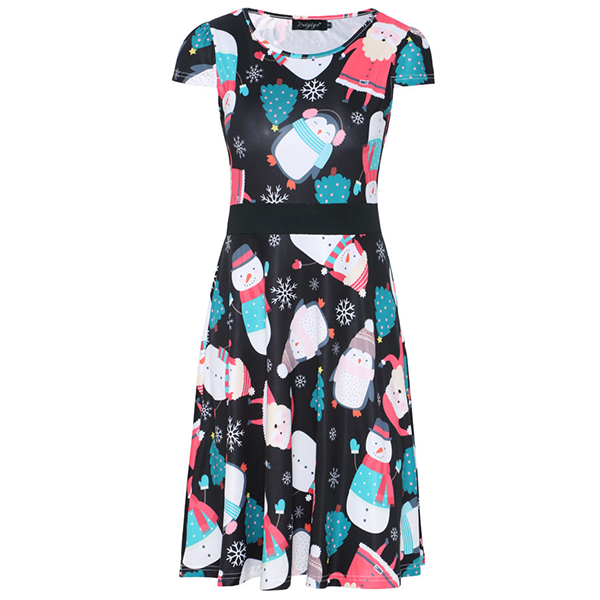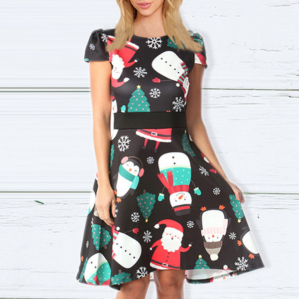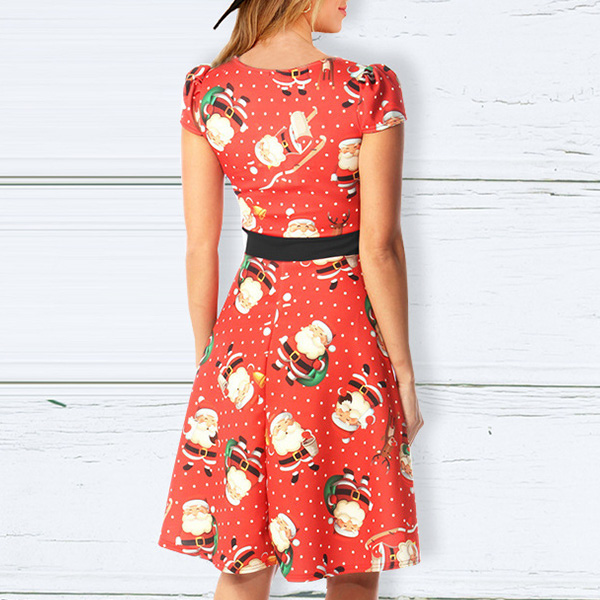 When you don't know what to wear for your Christmas party,then you can just make your eyes focused on this dress. The Christmas printed details make this piece look so eye-catching and charming. Finished with short sleeve,round neck and high waist design,this wonderful dress can ensure you a happy and memorable time.