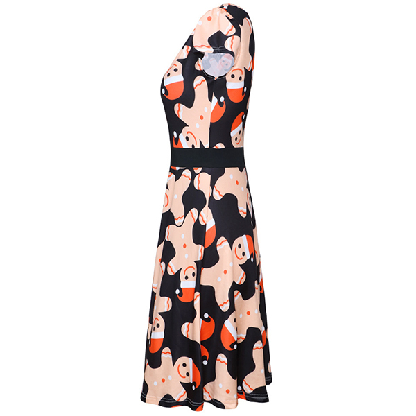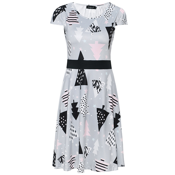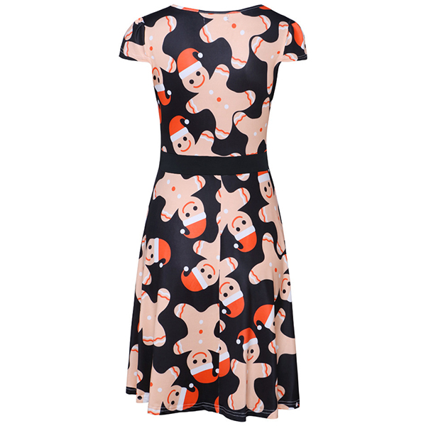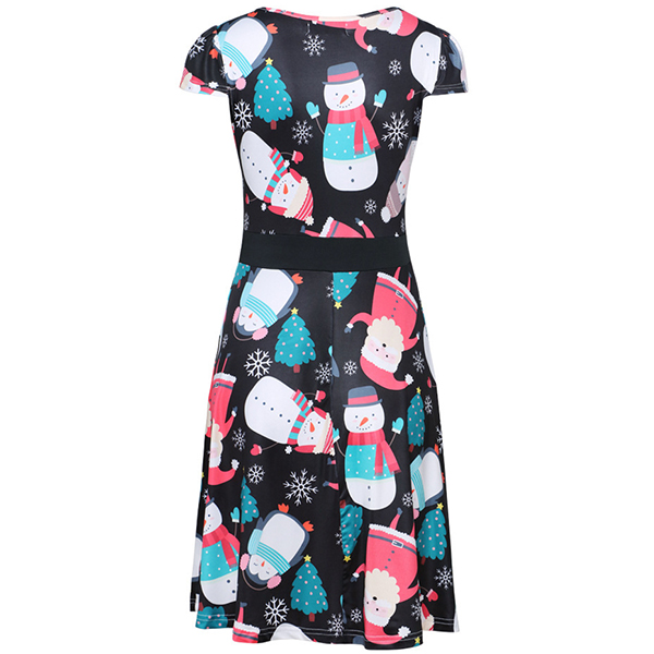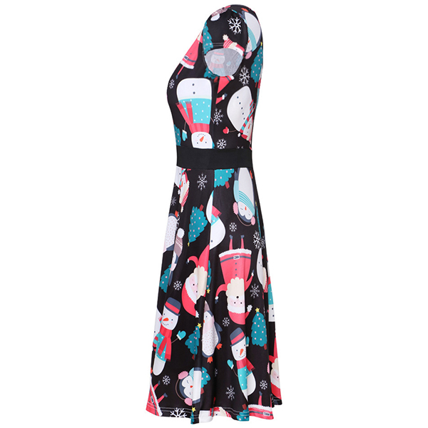 Fashion Short Sleeve Round Neck Christmas Printed Dress