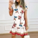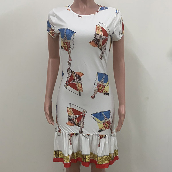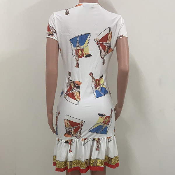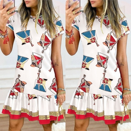 Fashion Short Sleeve Round Neck Colorful Square Ruffle Hem Dress