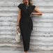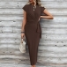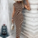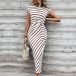 Fashion Short Sleeve Round Neck Drawstring Waist Stripe Dress