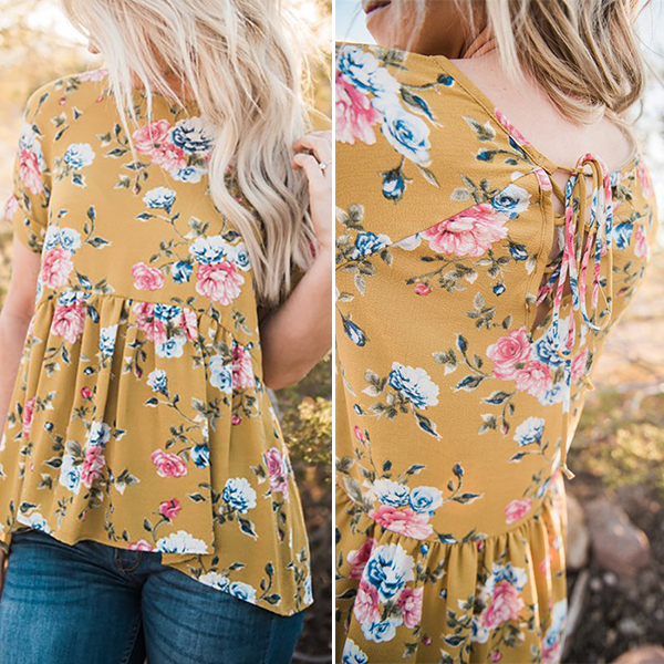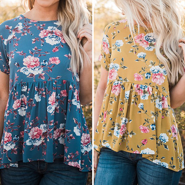 Achieve for a laid-back and stylish weekend look with this top. Boasts vibrant floral print,sweet and playful. The short sleeve,