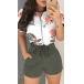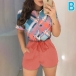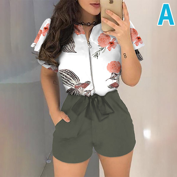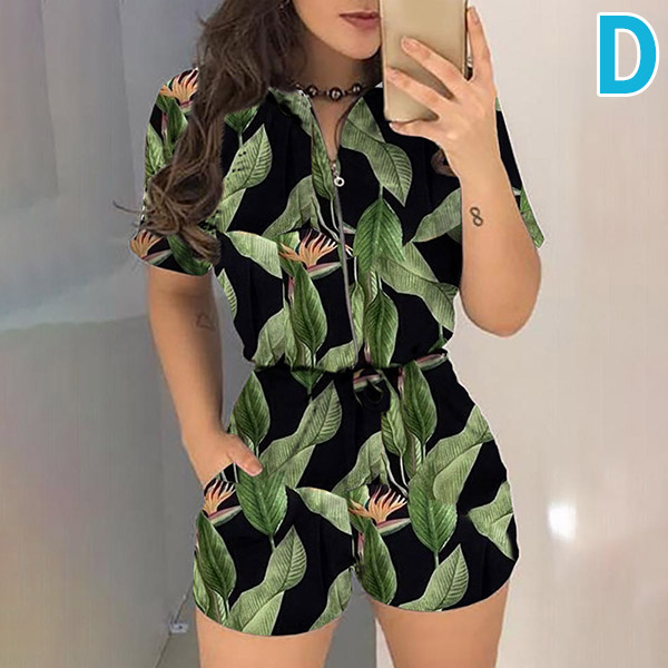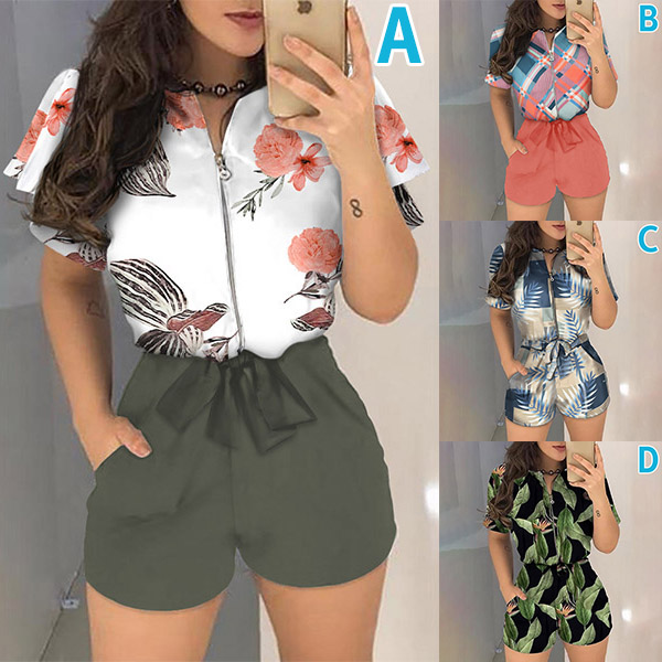 When you don’t know how to match or have no time to do your daily matching,then this romper can be your perfect solution. Finished with short sleeve,round neck,high waist and front-zipper design,this piece also can showcase your slender figure while it maintains the comfy. And the printed spliced details will enrich the design style. Your perfect choice in these summer days.