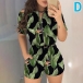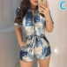 Fashion Short Sleeve Round Neck High Waist Front-zipper Printed Spliced Romper