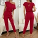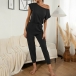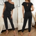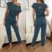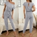 Fashion Short Sleeve Round Neck High Waist Jumpsuit