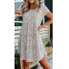 Fashion Short Sleeve Round Neck High Waist Leopard Printed Dress