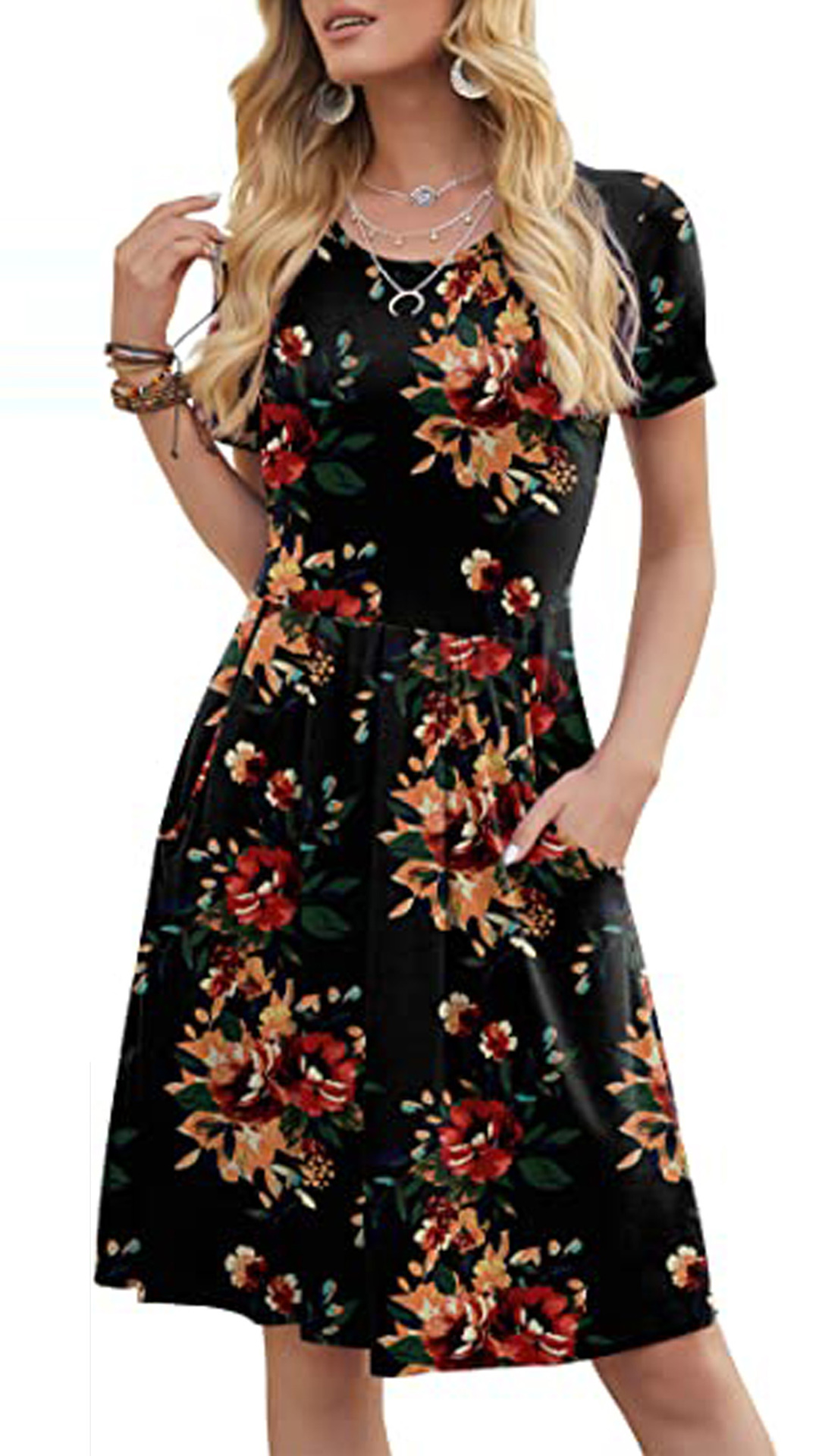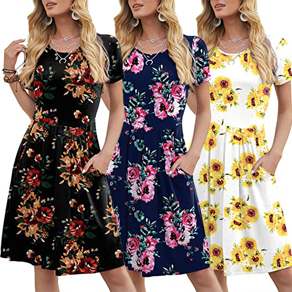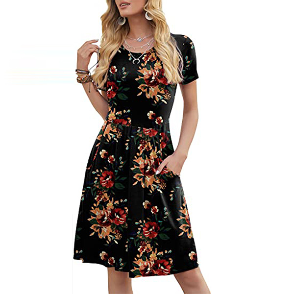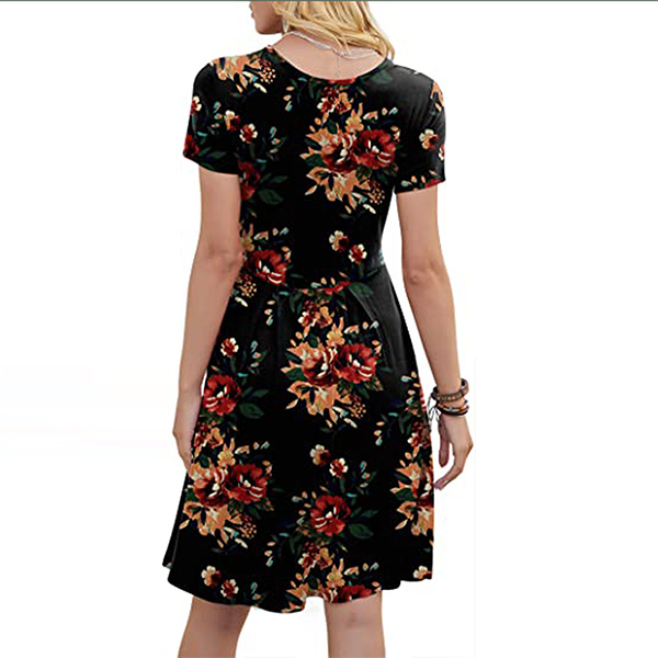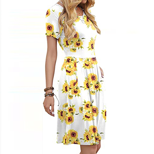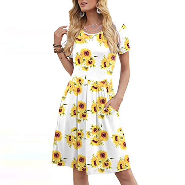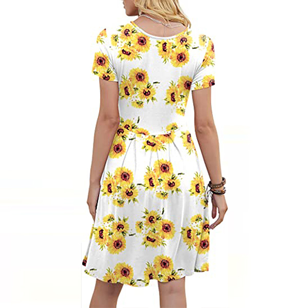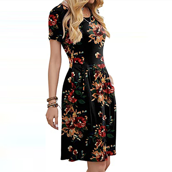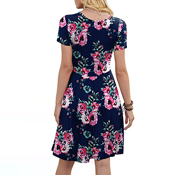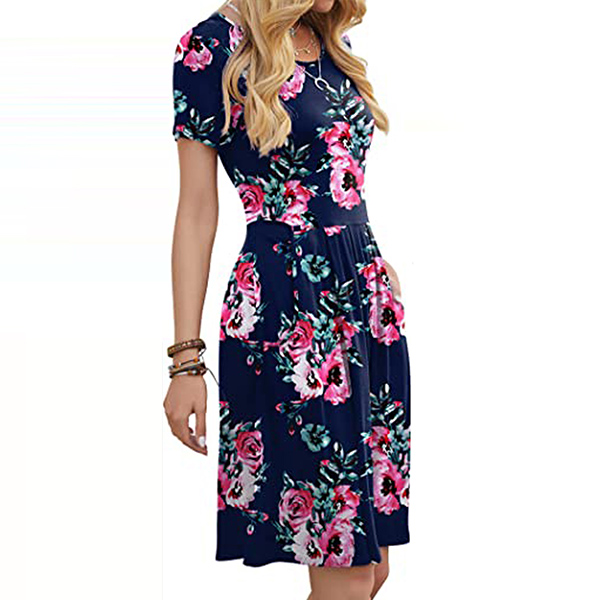 When it comes to instant style definition, rest easy when you have this dress in your wardrobe. The chic and eye-catching printed details can help you catch more eyes. Finished with short sleeve,round neck and high waist design,this piece that combines of cozy and stylish vibes is worth to be your wardrobe staple in these summer days.