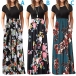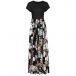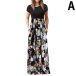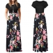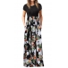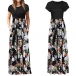 Fashion Short Sleeve Round Neck High Waist Printed Spliced Hem Maxi Dress