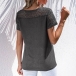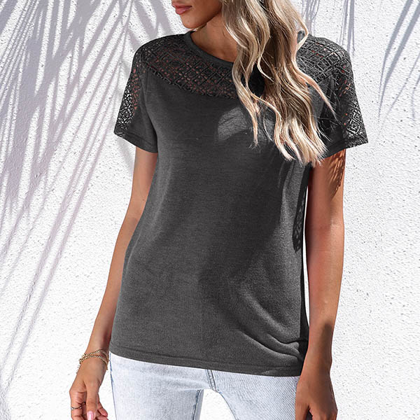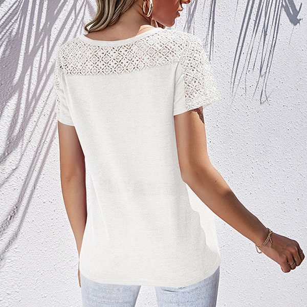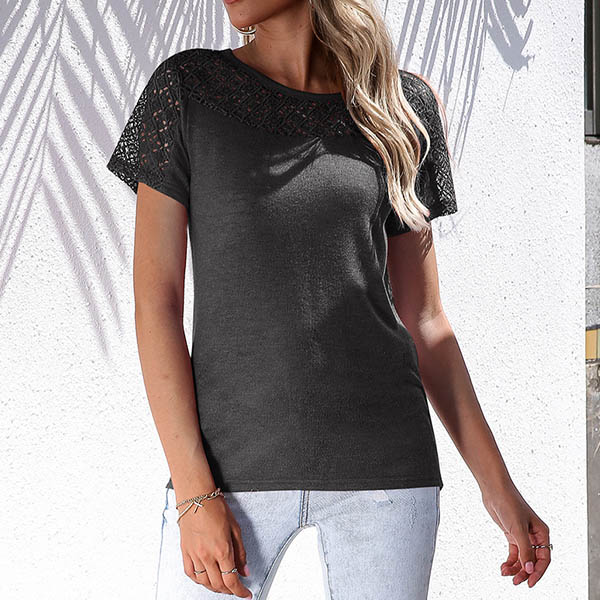 Fashion Short Sleeve Round Neck Hollow Out Crochet Spliced T-shirt