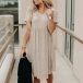 For these hot summer days,this cozy yet stylish dress can be wise choice. Crafted from soft and breathable fabric,with short sleeve,round neck and an irregular hem,this dress not only can give you a comfortable day,but also can maintain your style and personality. Like this style piece? Then don't miss this chance.