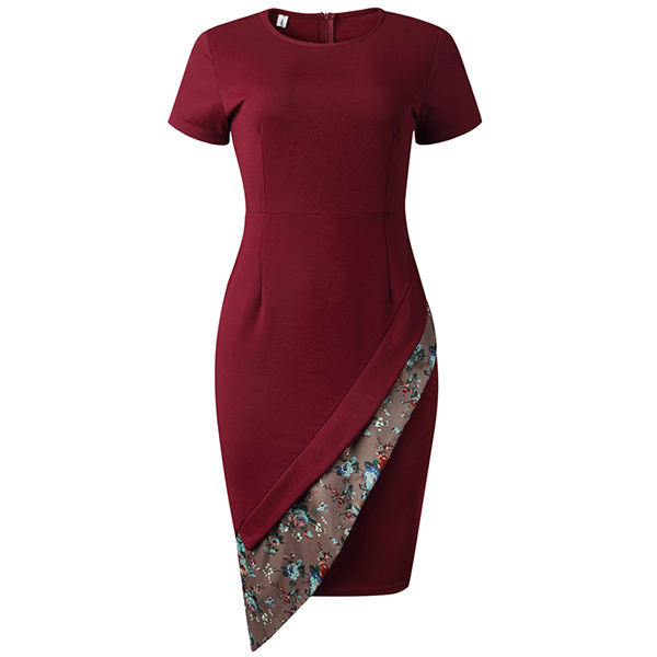 Fashion Short Sleeve Round Neck Irregular Hem Slim Fit Dress