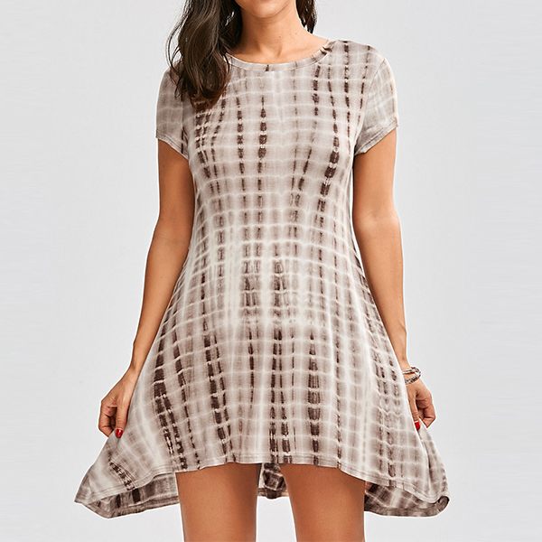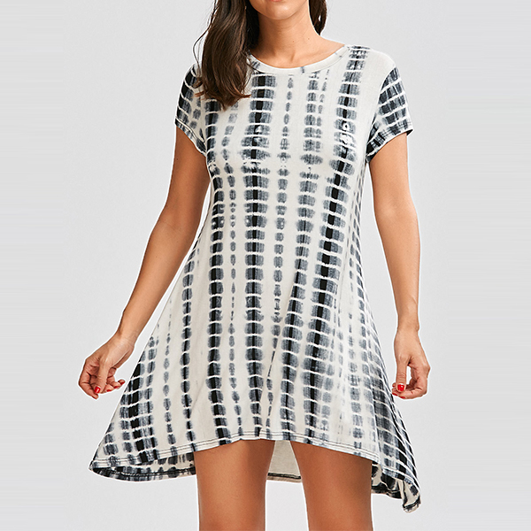 Tie-dye printed design makes it look so chic and edgy. It is finished with short sleeve,round neck,an irregular hem